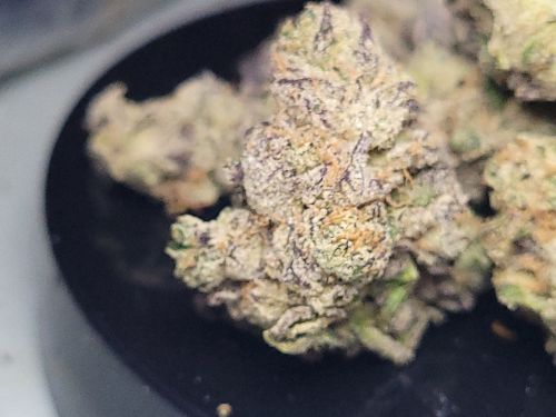 Purple Glue is a rare indica dominant hybrid strain (80% indica/20% sativa) created through crossing the classic Las Vegas Purple Kush X Gorilla Glue #4 strains. If you're a fan of either of its parent strains, you'll totally fall head over heels for this gorgeous girl. Purple Glue packs a super heavy high that hits both mind and body, leaving you totally relaxed and at ease with the world around you almost immediately. The high starts with a cerebral effect in the back of the mind that fills you with a tingly sense of energy. This quickly expands through your mind, easing any mental aches or pains and replacing them with hazy happiness. As your energy fades, a relaxing body high will wash over you, lulling you into a state of complete calm. Thanks to these effects and its high 22-28% average THC level, Purple Glue is said to be perfect for treating those suffering from conditions such as chronic stress or anxiety, appetite loss or nausea, chronic pain, and depression. This bud has a sweet spicy herbal flavor with a woody exhale. The aroma is of pungent earth and herbs with a sweet and spicy pine overtone that lingers long after your final toke. Purple Glue buds have fluffy spade-shaped olive green nugs with rich purple undertones, bright orange hairs, and a coating of frosty white purple-tinted crystal trichomes.